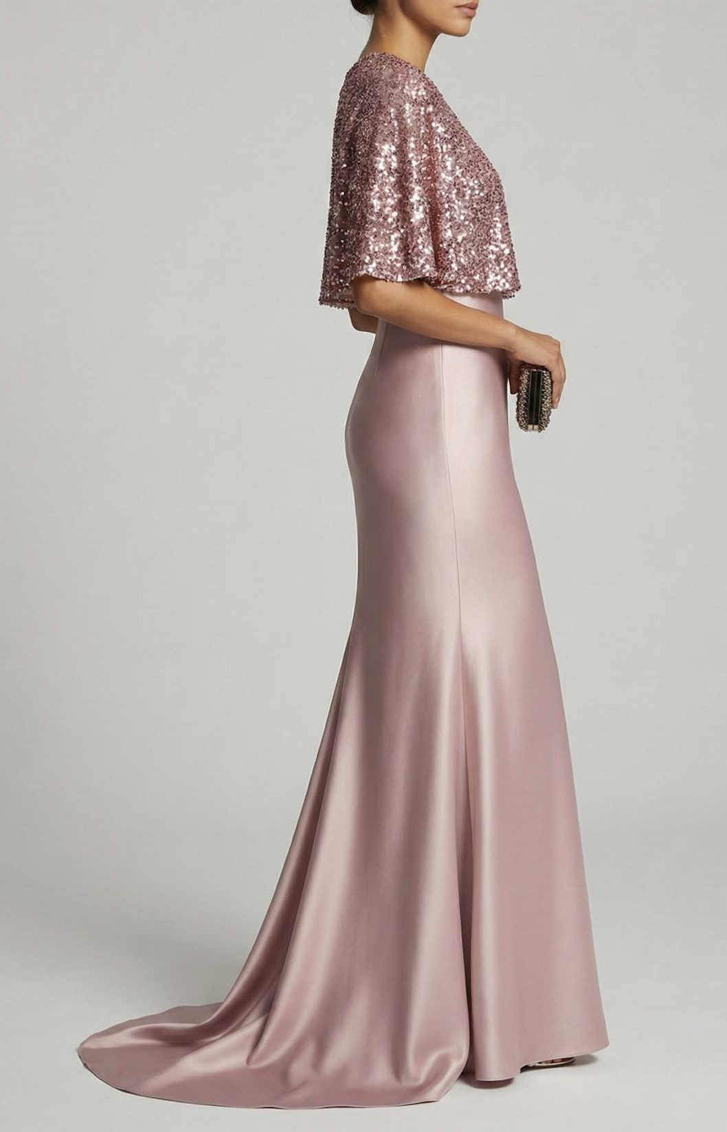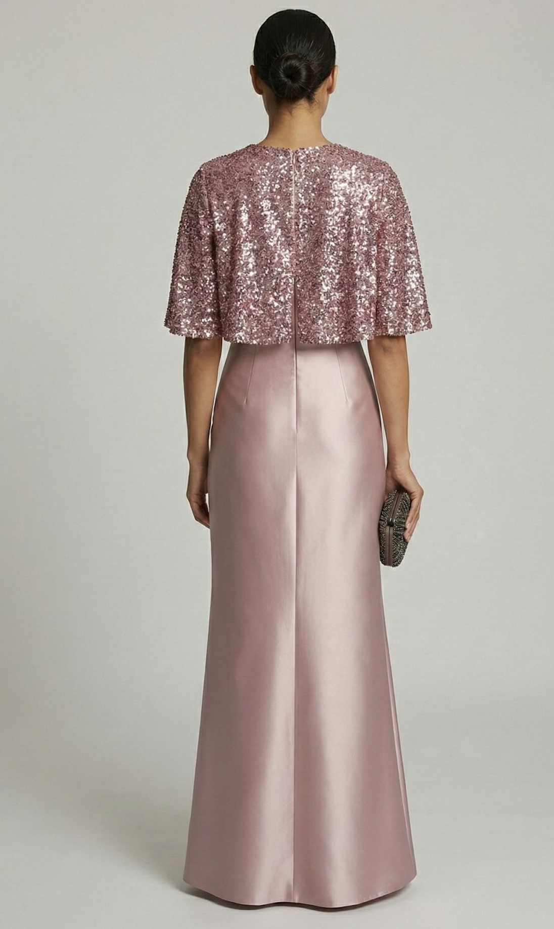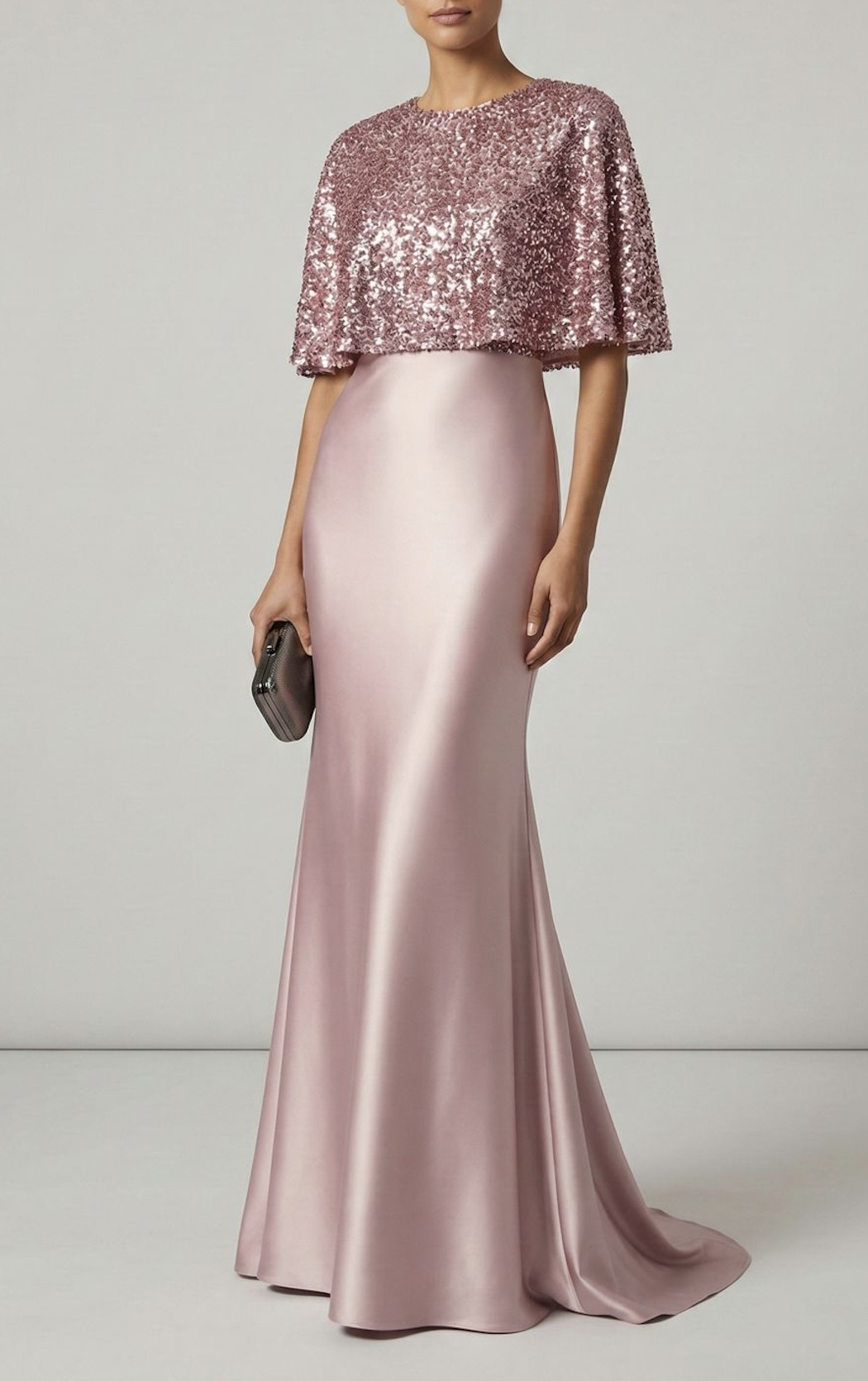 Rose Gold Sequin Capelet & Satin Evening Gown